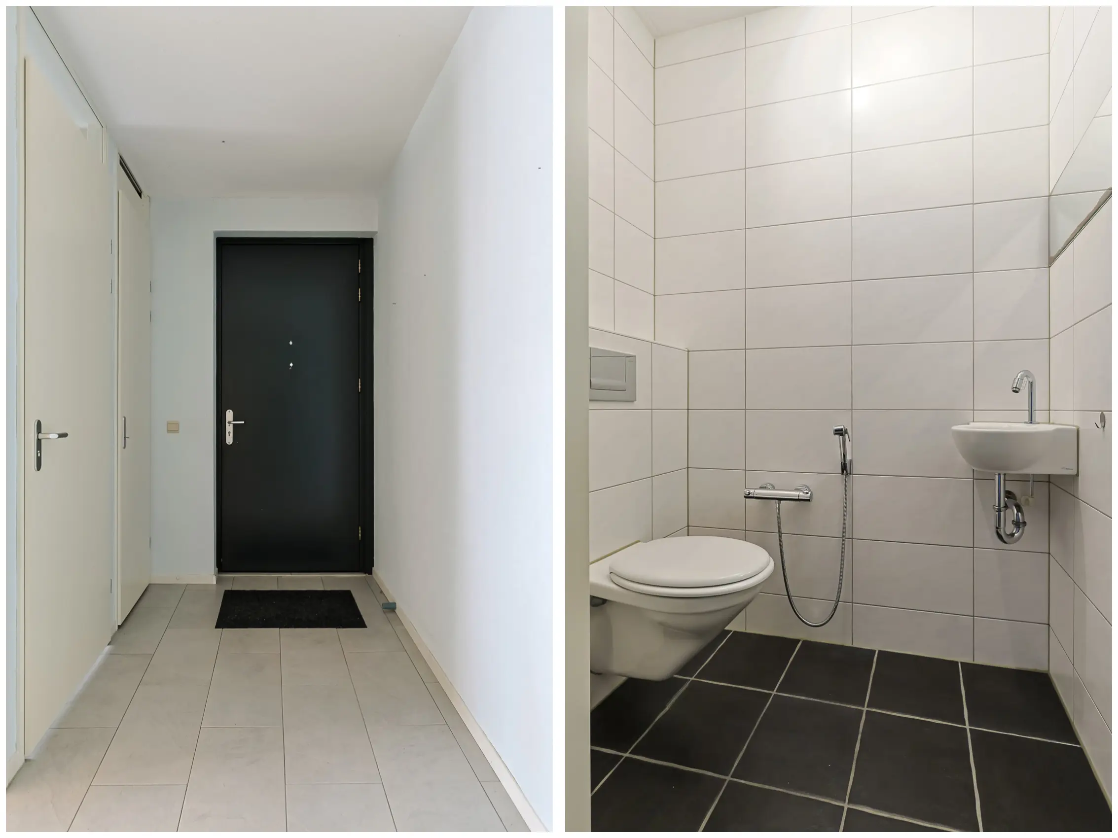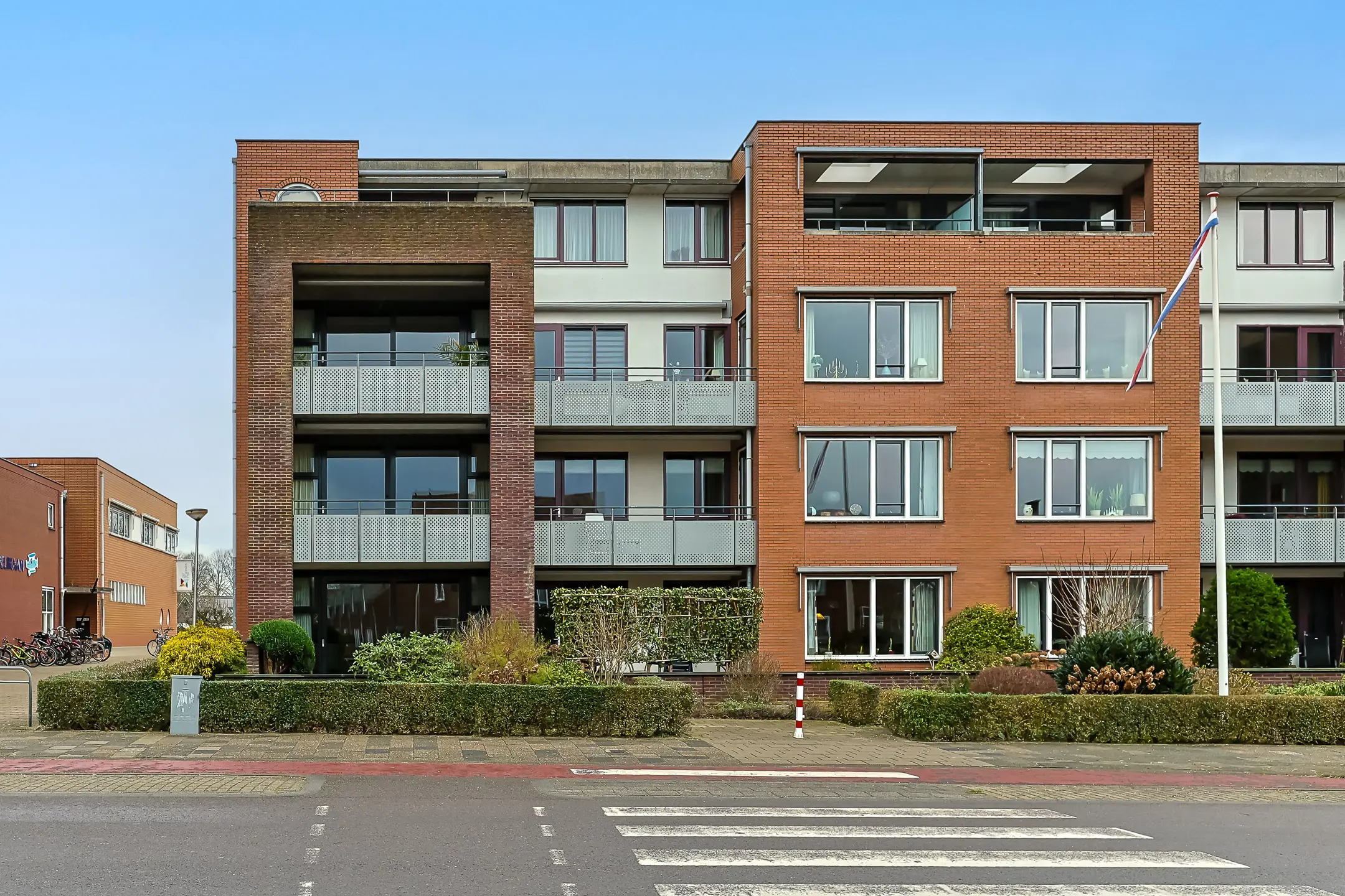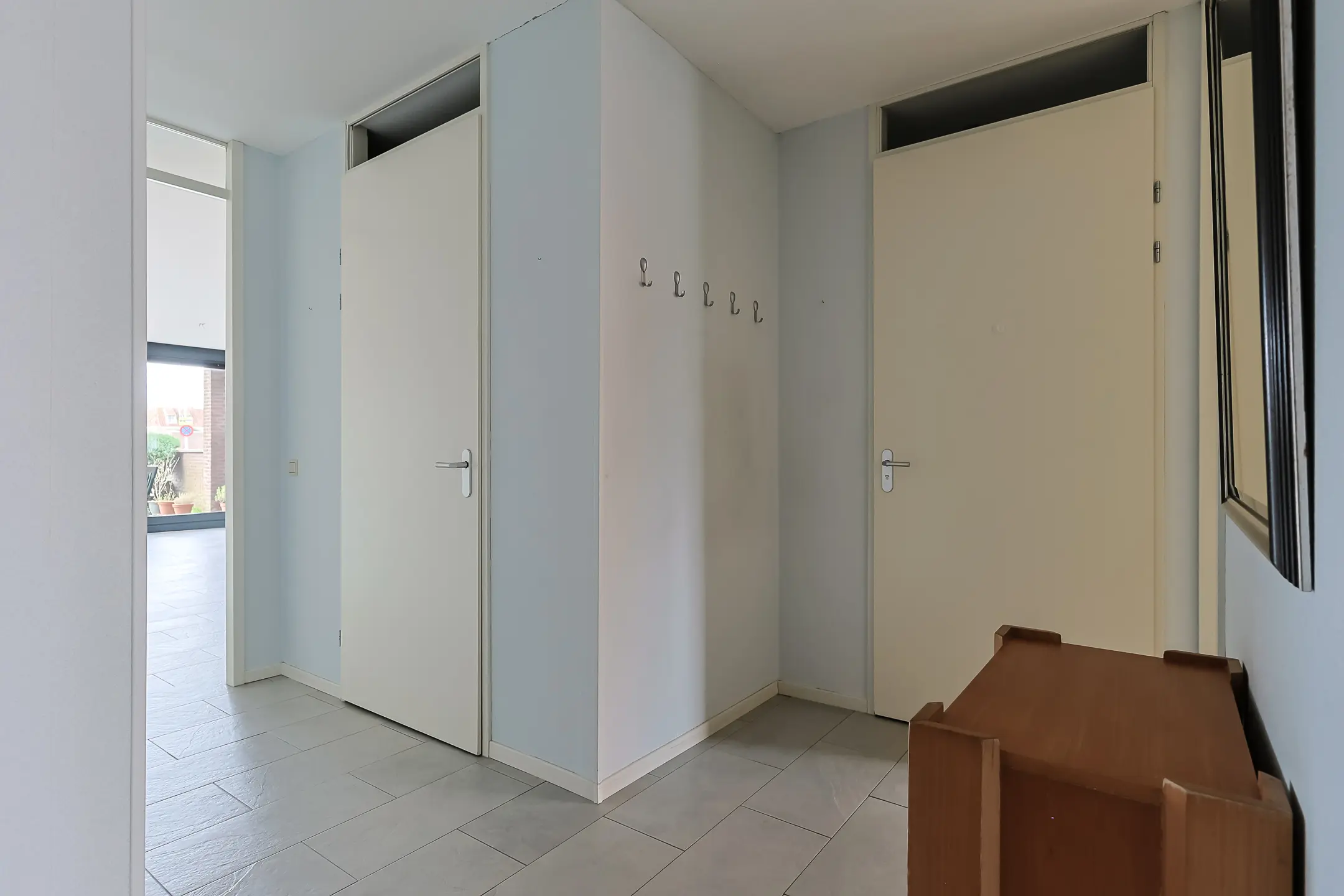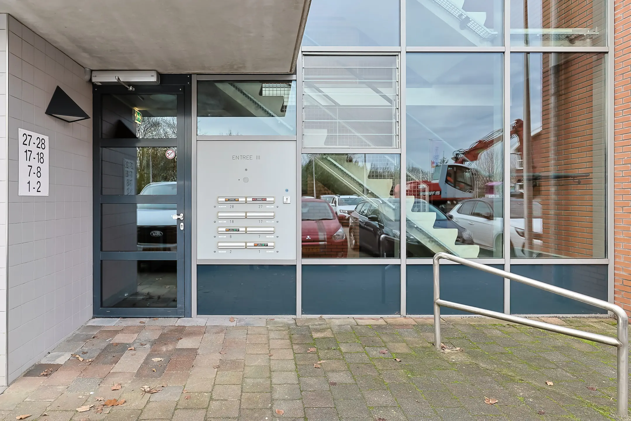 Via de centrale entree met brievenbussen, bellentableau, lift en trapopgang bereik je de voordeur van het appartement. Vanuit de hal zijn ook de privé bergingen bereikbaar. Via een tochthal komt u bij het appartement en die van uw naaste buren.