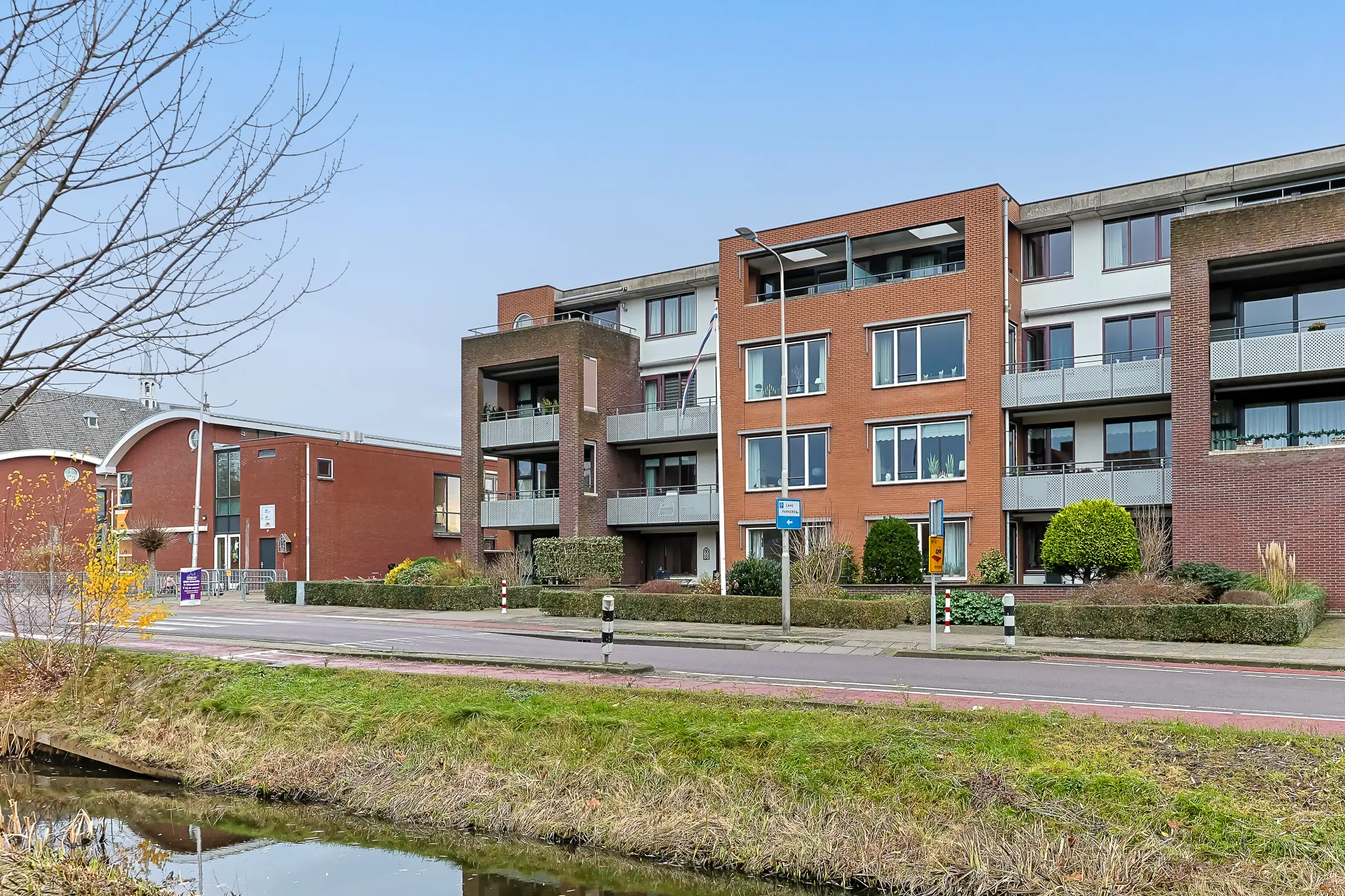 Het appartementencomplex ligt op een rustige en groene locatie in Haastrecht, vlak bij het Haastrechtse Bos en zwembad “Natuurlijk De Loete”. Haastrecht is een dorp met een duidelijke eigen sfeer, een lange geschiedenis en een hechte gemeenschap. De dorpskern ligt op korte loopafstand en biedt alles voor de dagelijkse boodschappen, aangevuld met leuke winkels en fijne eetgelegenheden. In de omgeving kun je volop wandelen en fietsen, onder meer langs de Hollandse IJssel en door het open polderlandschap. Ook Gouda is snel bereikbaar, met de auto ben je in ongeveer 10 minuten in het centrum. Er is voldoende parkeergelegenheid rondom het complex en de uitvalswegen richting de N228 en A12 zijn goed bereikbaar.