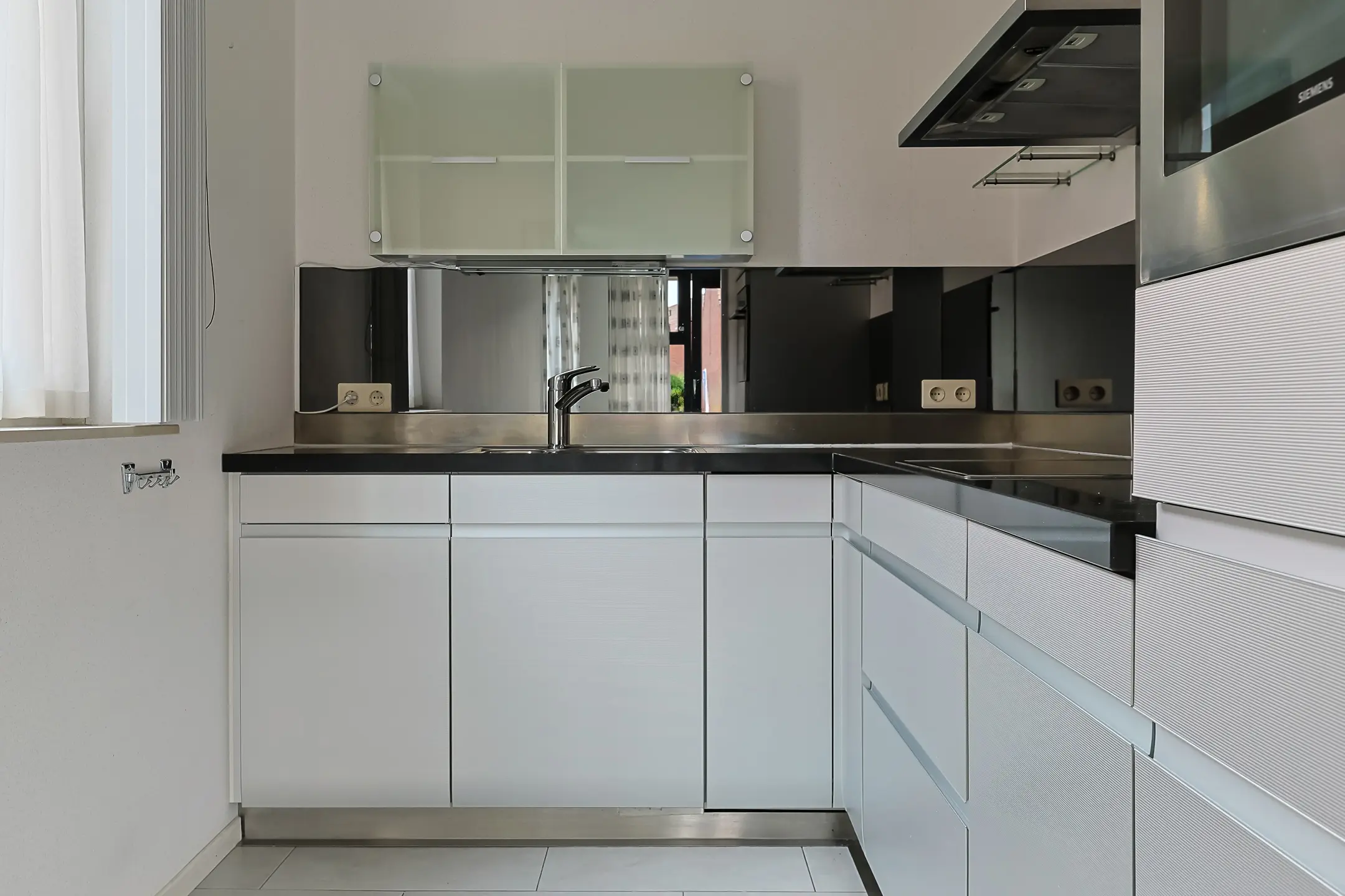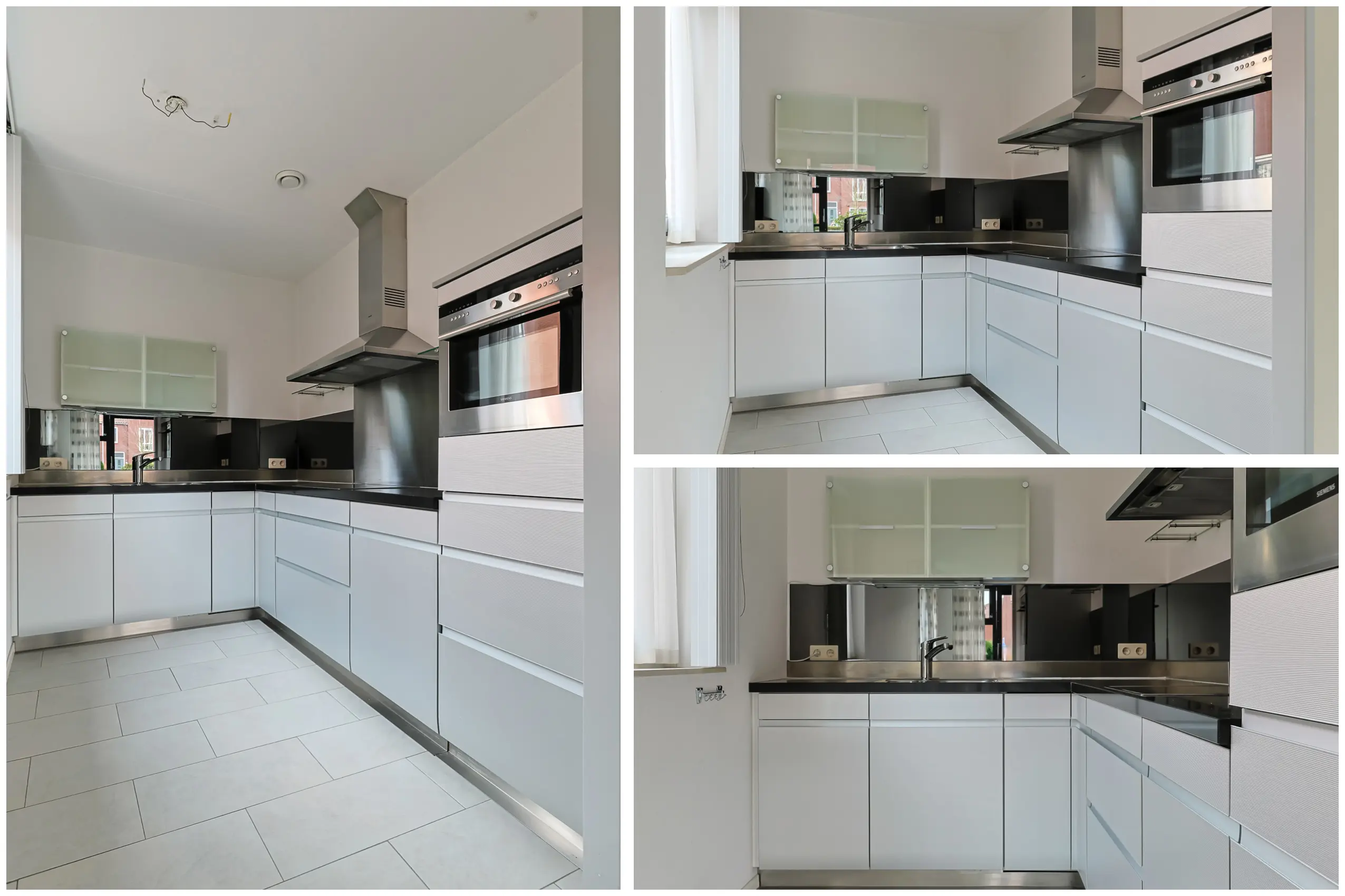 De open keuken ligt aan de zijkant van het appartement en is voorzien van een nette hoekopstelling van Siematic met o.a. een granieten blad, koelkast, vaatwasser, inductiekookplaat, afzuigkap en voldoende kastruimte.
