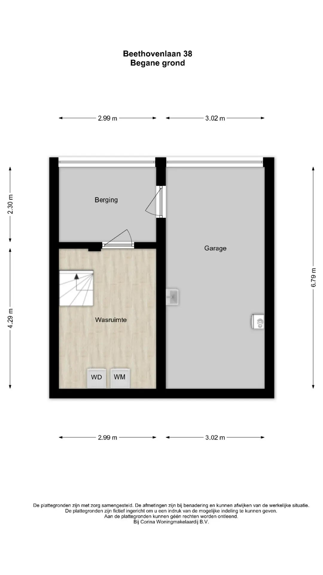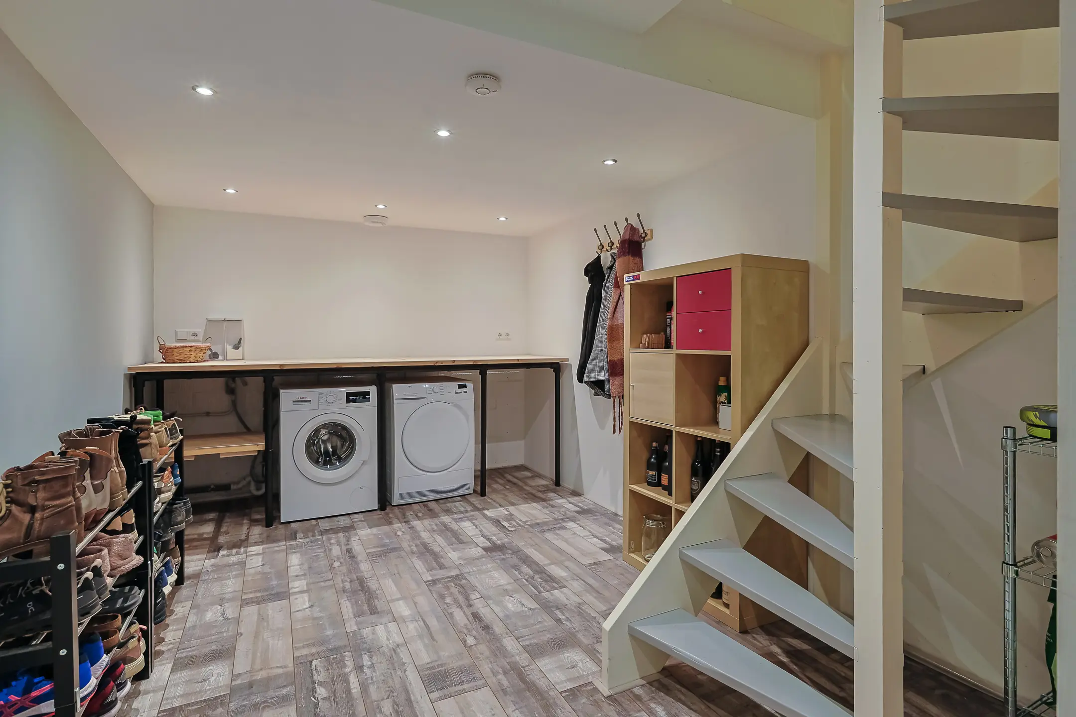 Via de elektrische garagedeur heb je toegang tot de inpandige garage (ca. 6.79 x 3.02 m), ideaal voor auto, fietsen en extra opslag. Daarnaast beschikt de woning over een separate berging (ook te bereiken via een elektrische garagedeur) en een praktische wasruimte met opstelplaats voor wasmachine en droger. De huidige eigenaar gebruikt de entree op de begane grond als hoofdentree (er zit ook een voordeur op de woonverdieping) en heeft hier voorzieningen gemaakt voor jassen en schoenen. Een functionele en ruime basis met volop bergruimte.