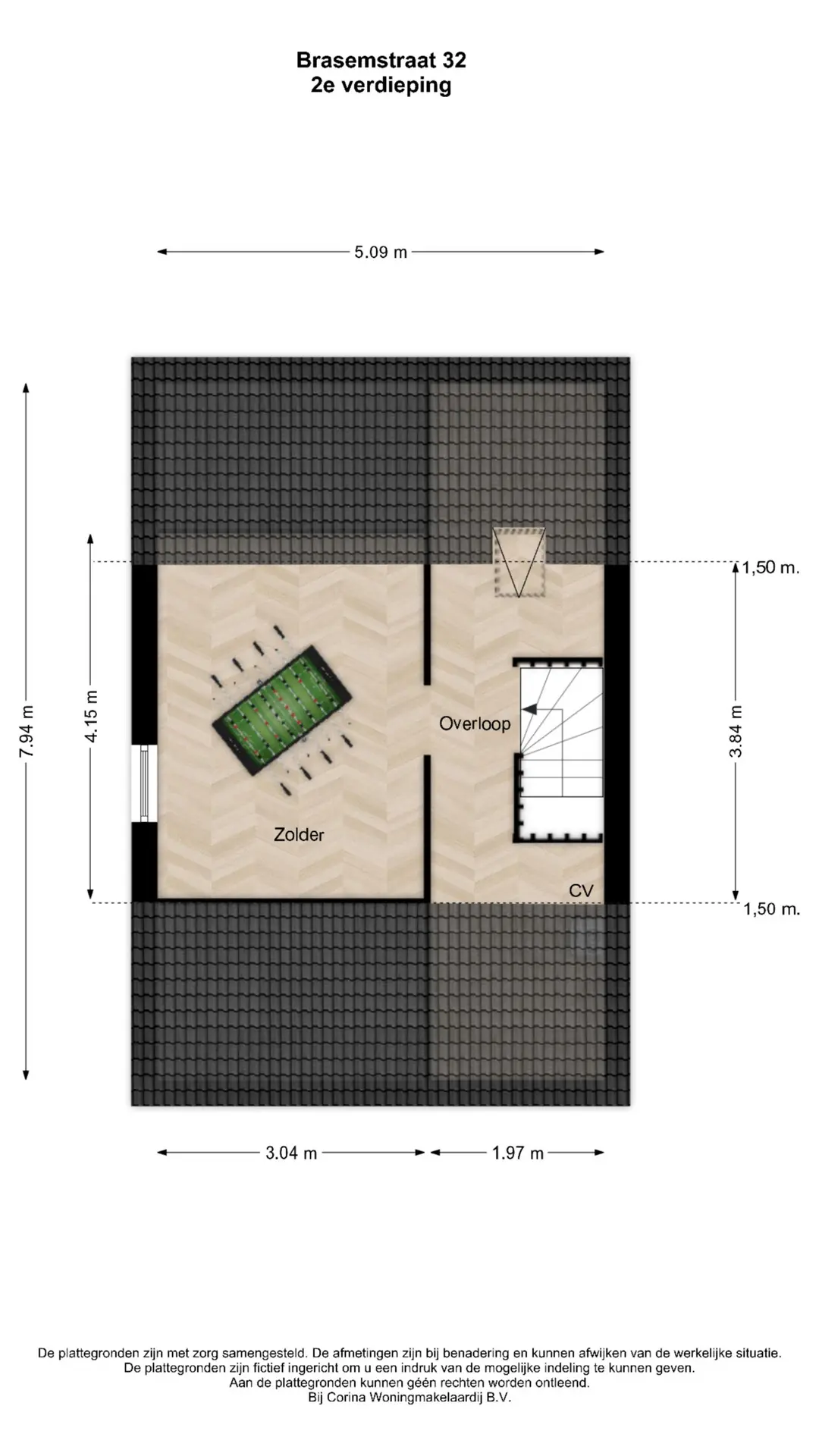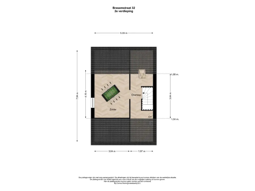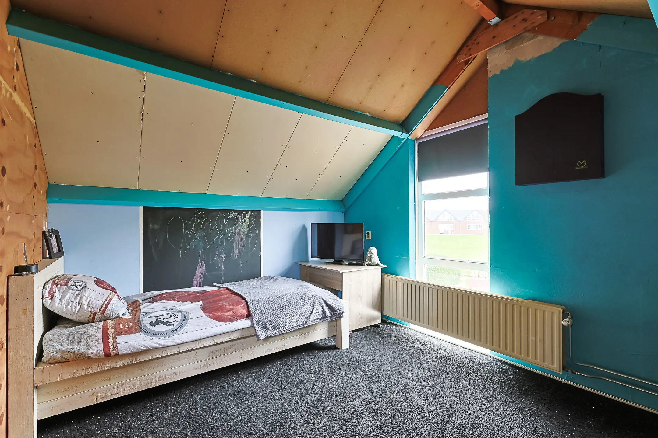 De ruime zolderverdieping beschikt over een grote overloop met dakraam en de cv-ketel (2016). Daarnaast bevindt zich hier een royale vierde slaapkamer met zijraam, wat zorgt voor prettige lichtinval.