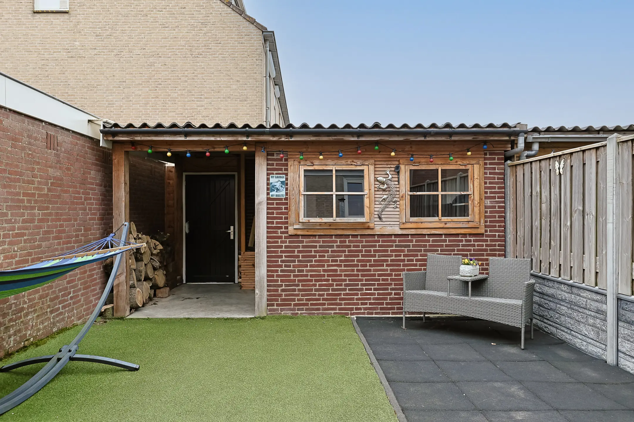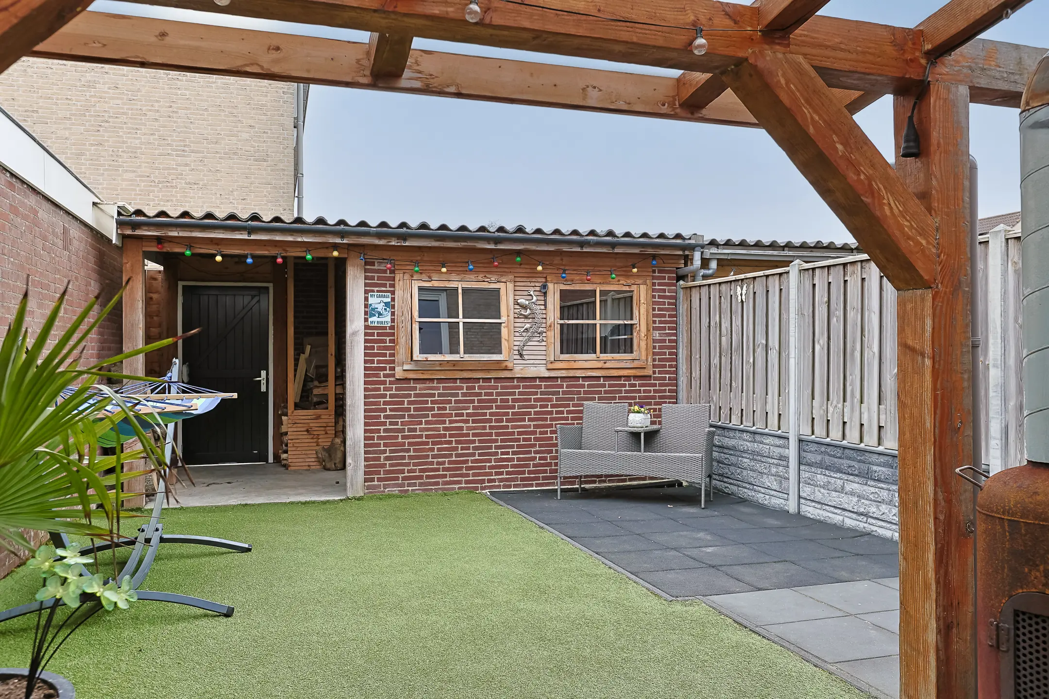 - Zonnige tuin op het zuiden met overkapping;