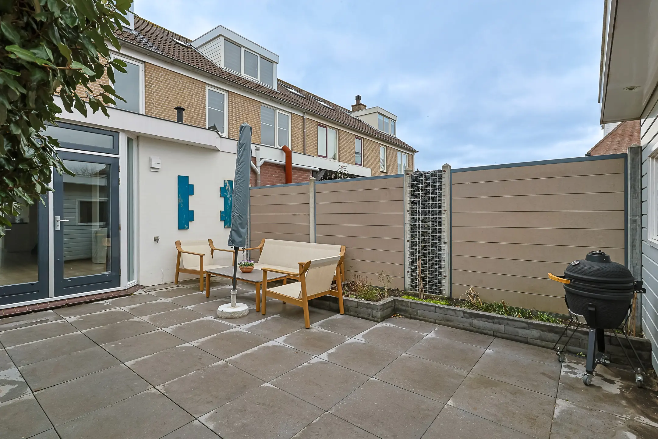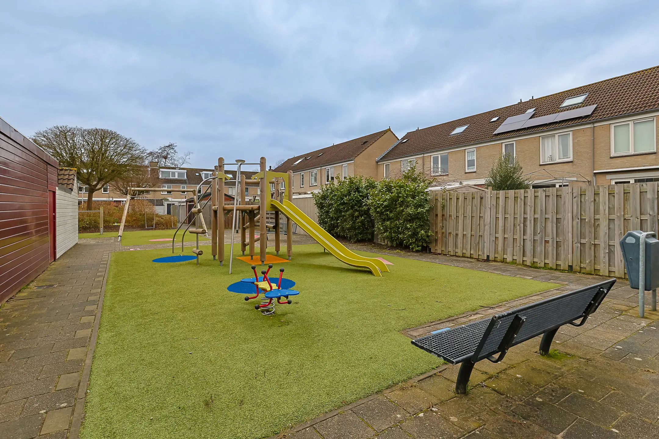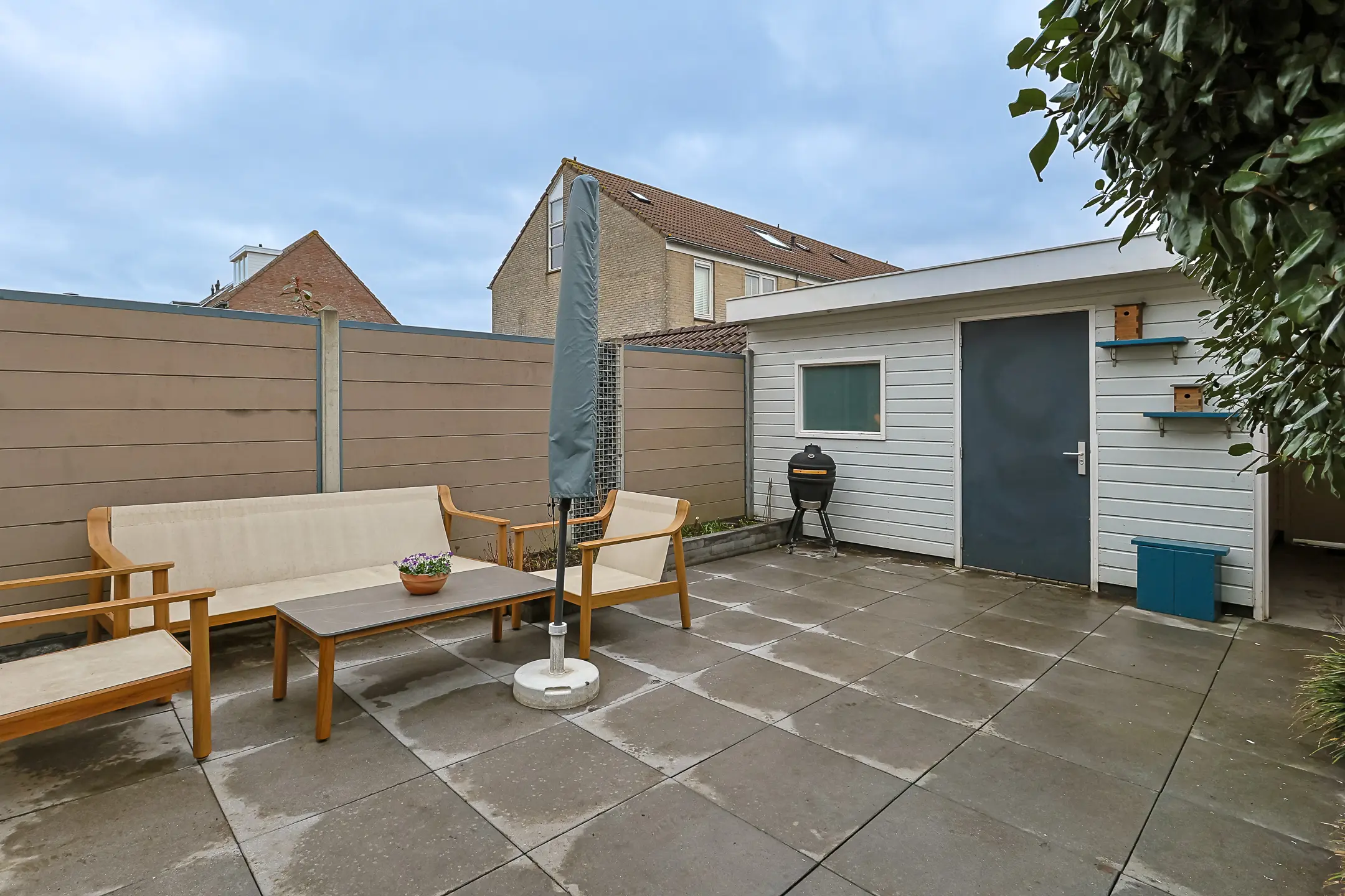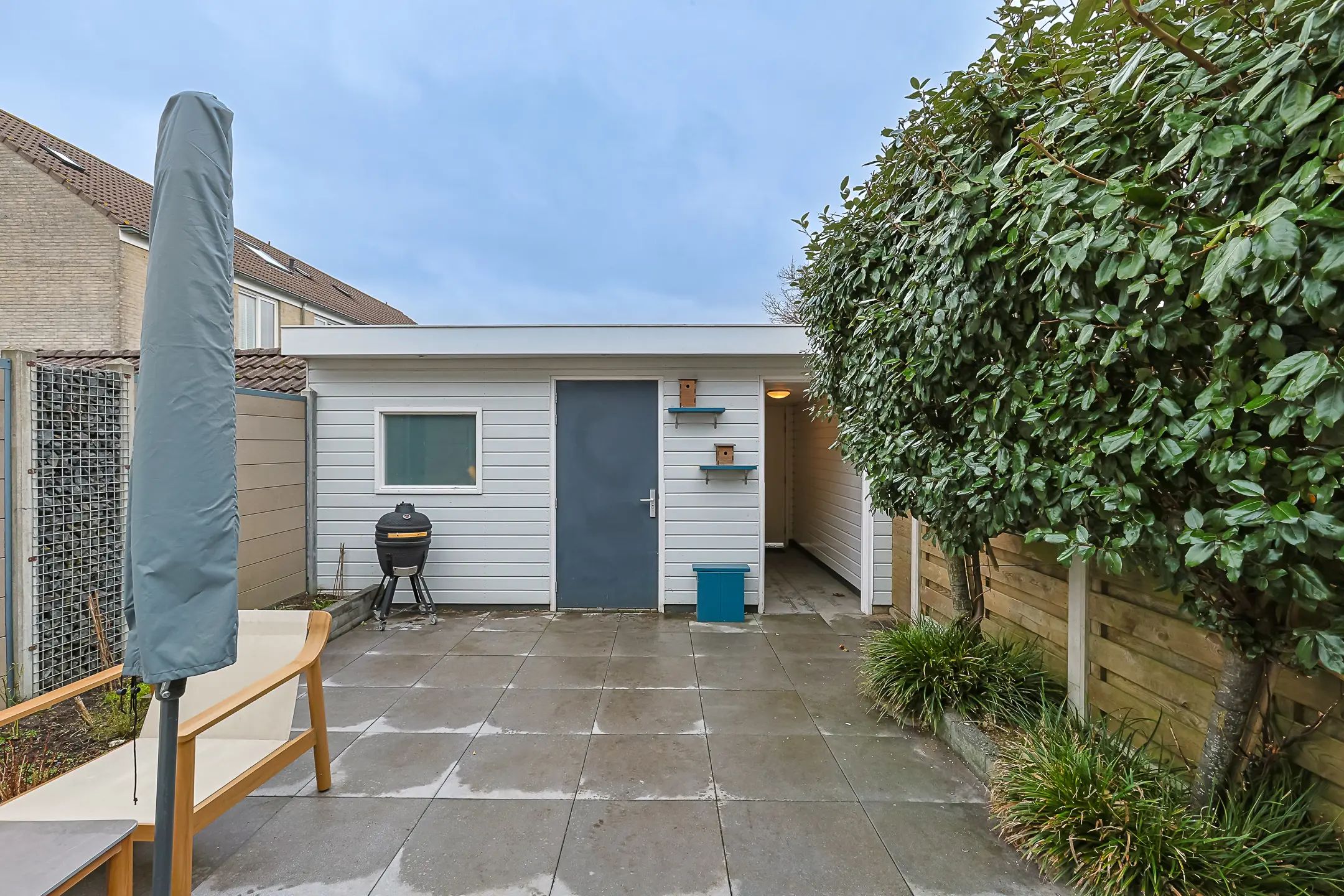 De achtertuin is gelegen op het noordoosten en voelt als een rustige, groene plek waar je heerlijk kunt ontspannen. De vrijstaande berging biedt ruimte voor fietsen en tuingereedschap en via de achterom is de tuin gemakkelijk bereikbaar. Daarnaast grenst de tuin aan een gezellig plein met groenvoorziening en een speelplek voor kinderen, ideaal voor jonge gezinnen!