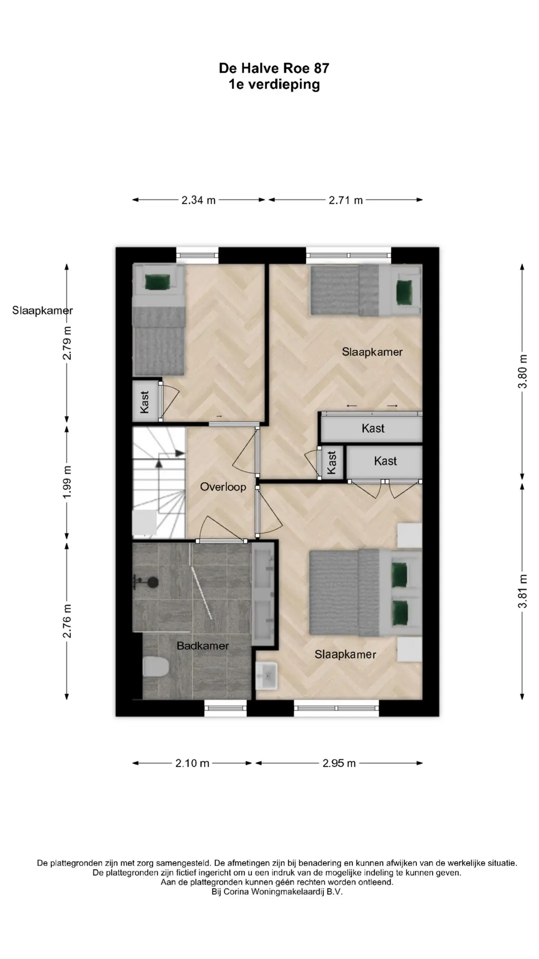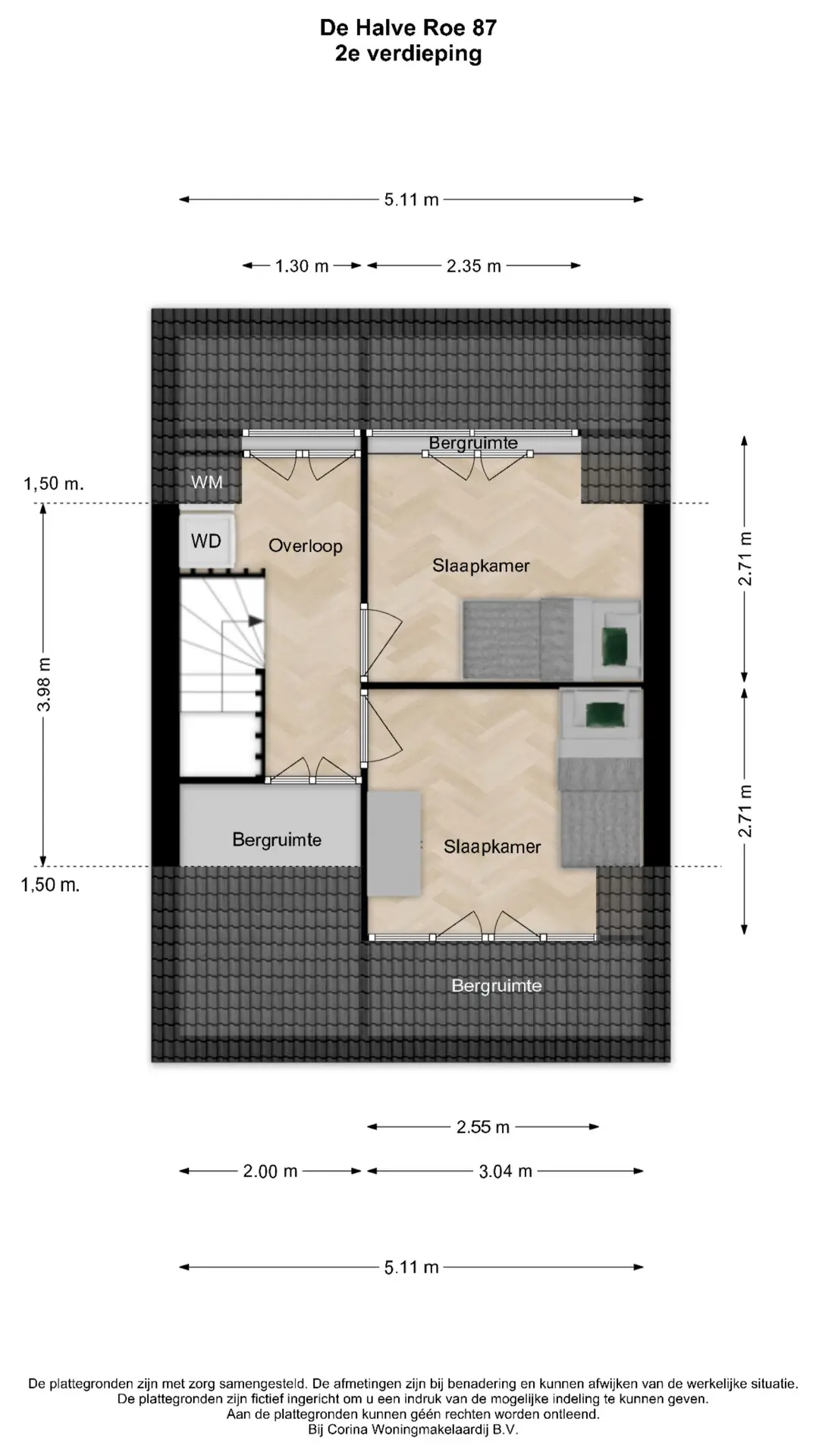 De tweede verdieping is een volwaardige toevoeging aan de woning. Dankzij de dakkapellen aan zowel de voor- als achterzijde zijn hier nog twee ruime slaapkamers gerealiseerd. Ideaal als extra slaapkamers, logeerkamers of bijvoorbeeld een speel- of hobbyruimte.