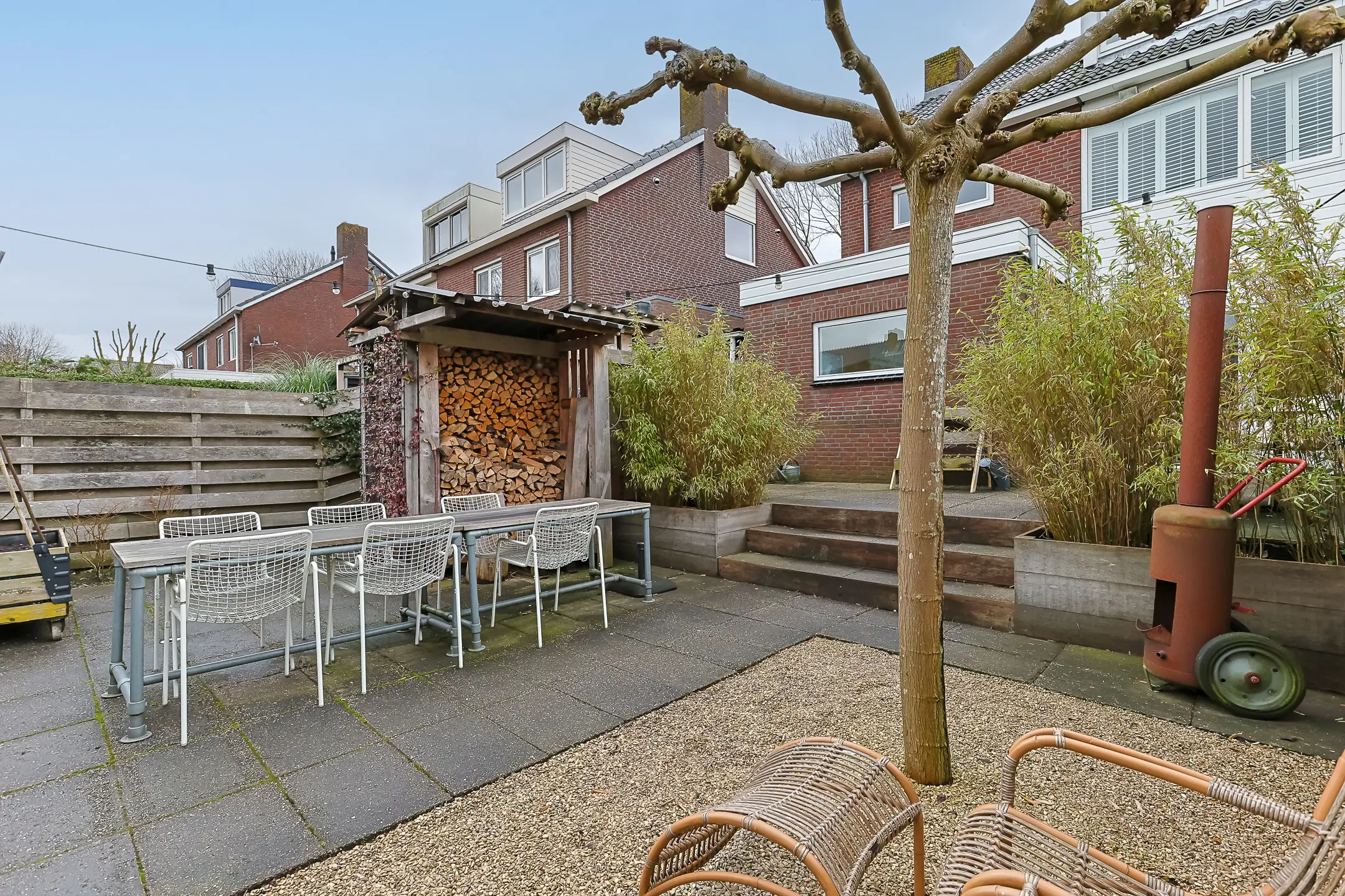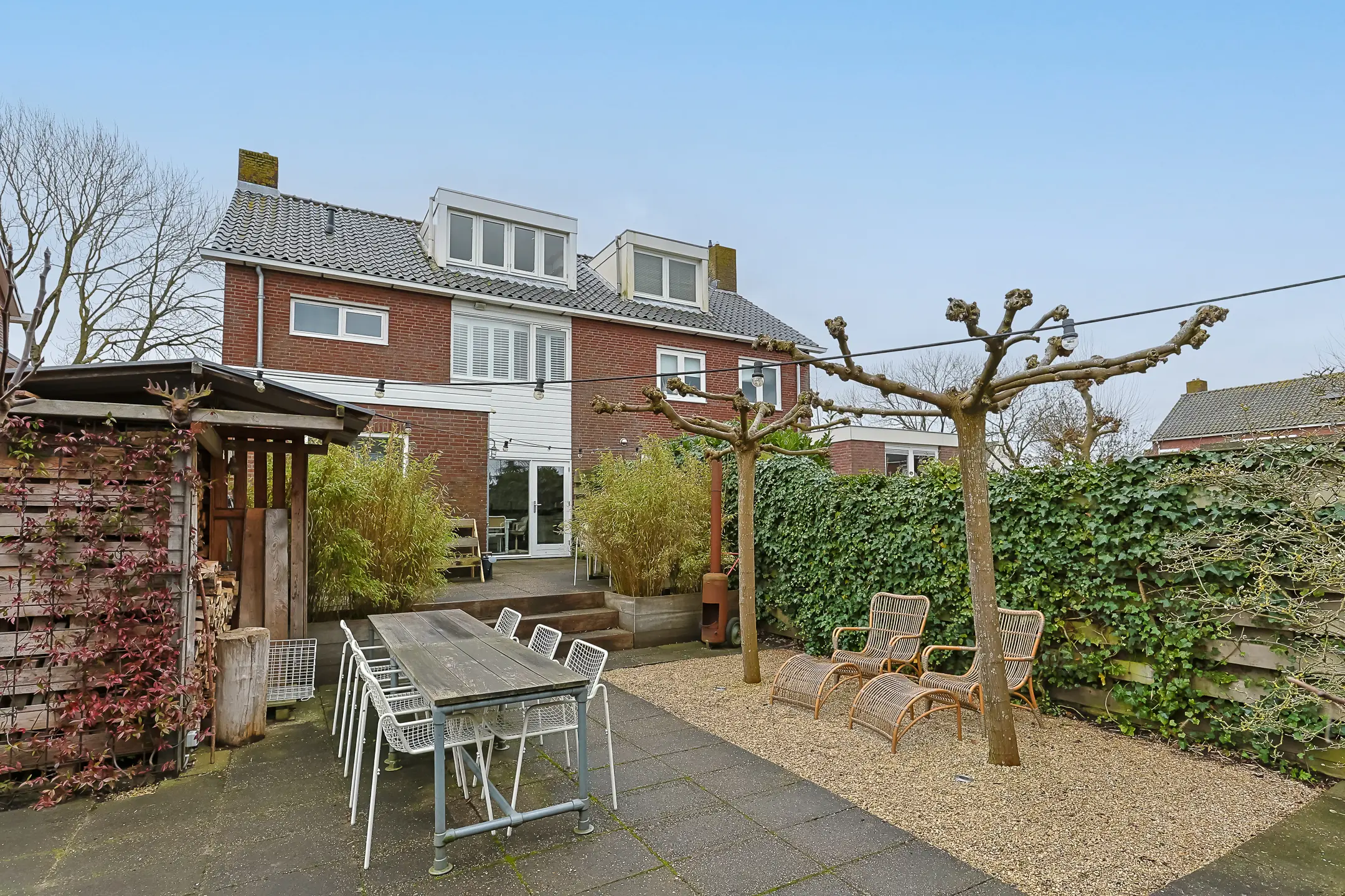 De onderhoudsvriendelijke achtertuin is opvallend diep en speels ingericht. Direct achter de woning ligt een terras waar je aan het einde van de middag nog lang in de zon zit en is hierdoor perfect voor een diner buiten.