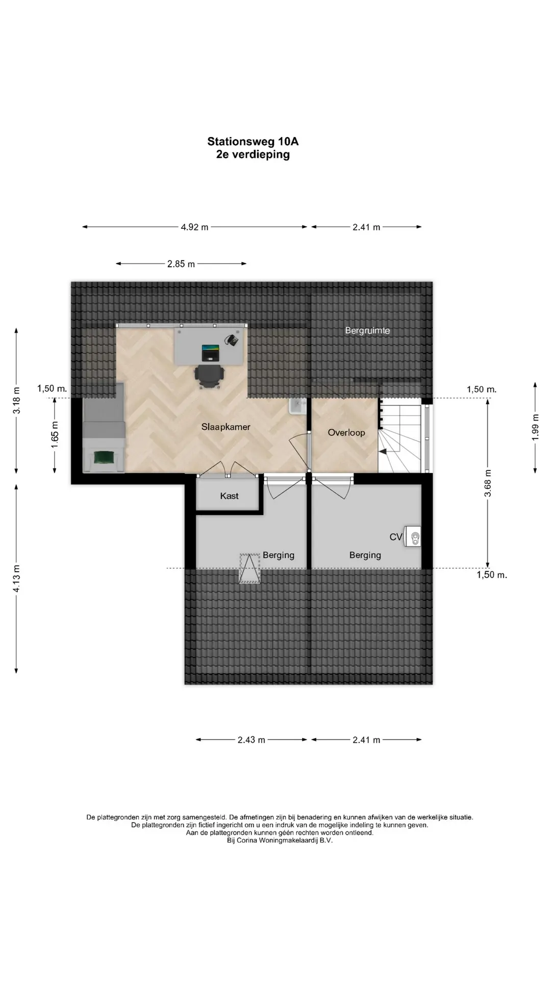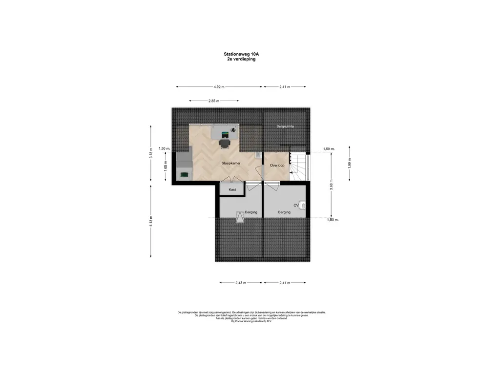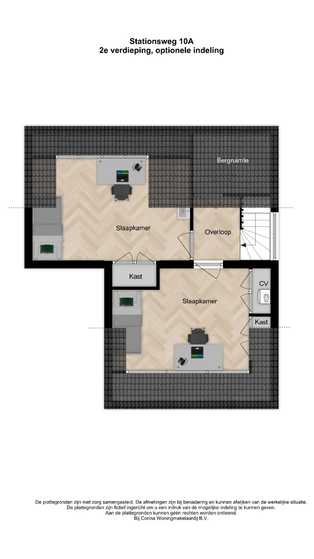 Op de zolderverdieping is een overloop met daglicht via het zijraam en bergruimte onder het schuine dak. Aan de achterzijde is een vierde slaapkamer met dakkapel, vaste kast en wastafelmeubel. Aan de voorzijde is er bergruimte én de mogelijkheid om met een dakkapel een extra slaapkamer te realiseren. Hierdoor zal het woonoppervlakte ook vergroot kunnen worden! Tot slot is er nog een aparte berging met dakraam.