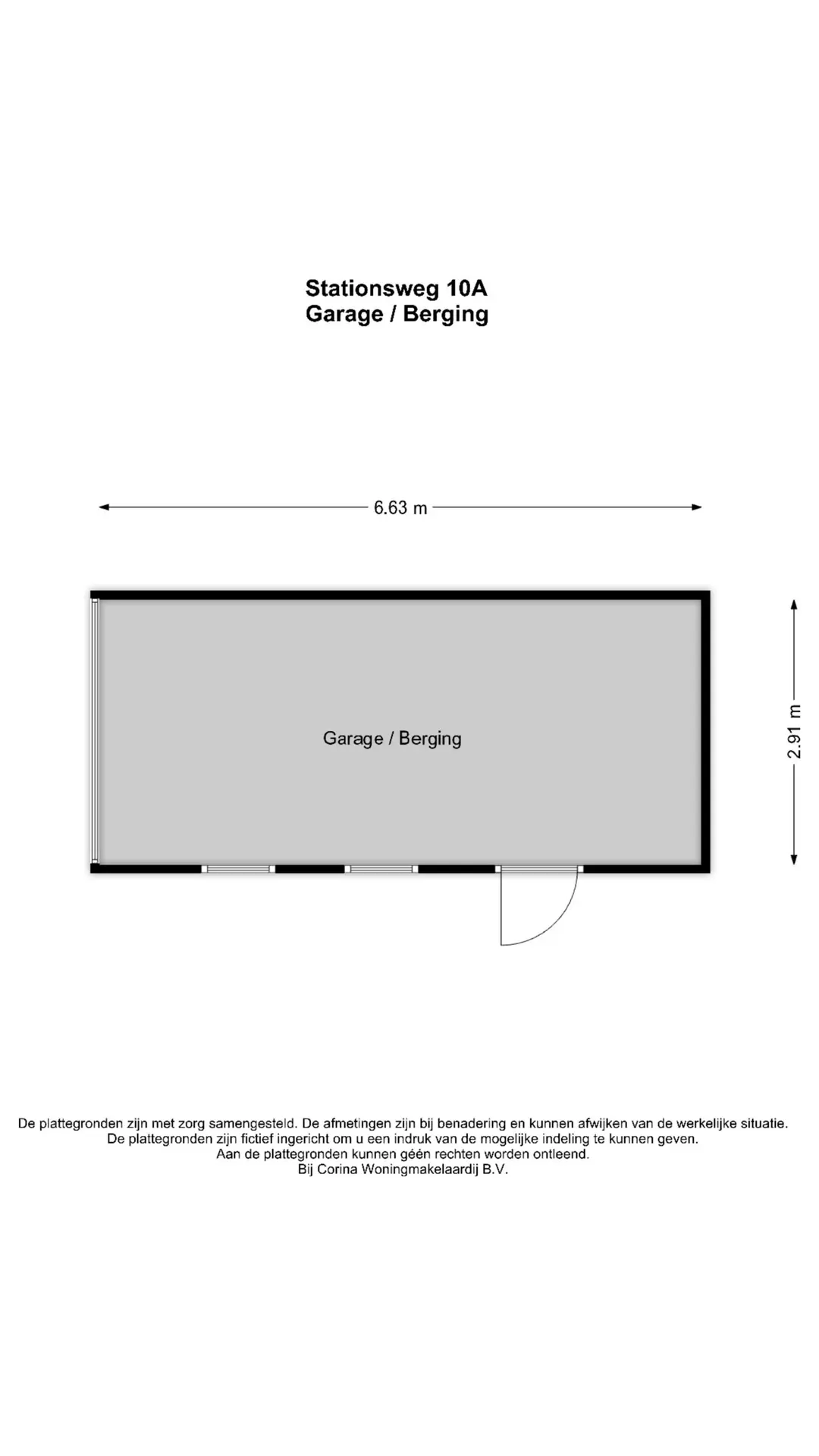 - parkeergelegenheid voor één auto en garage (6.63 x 2.91 m)