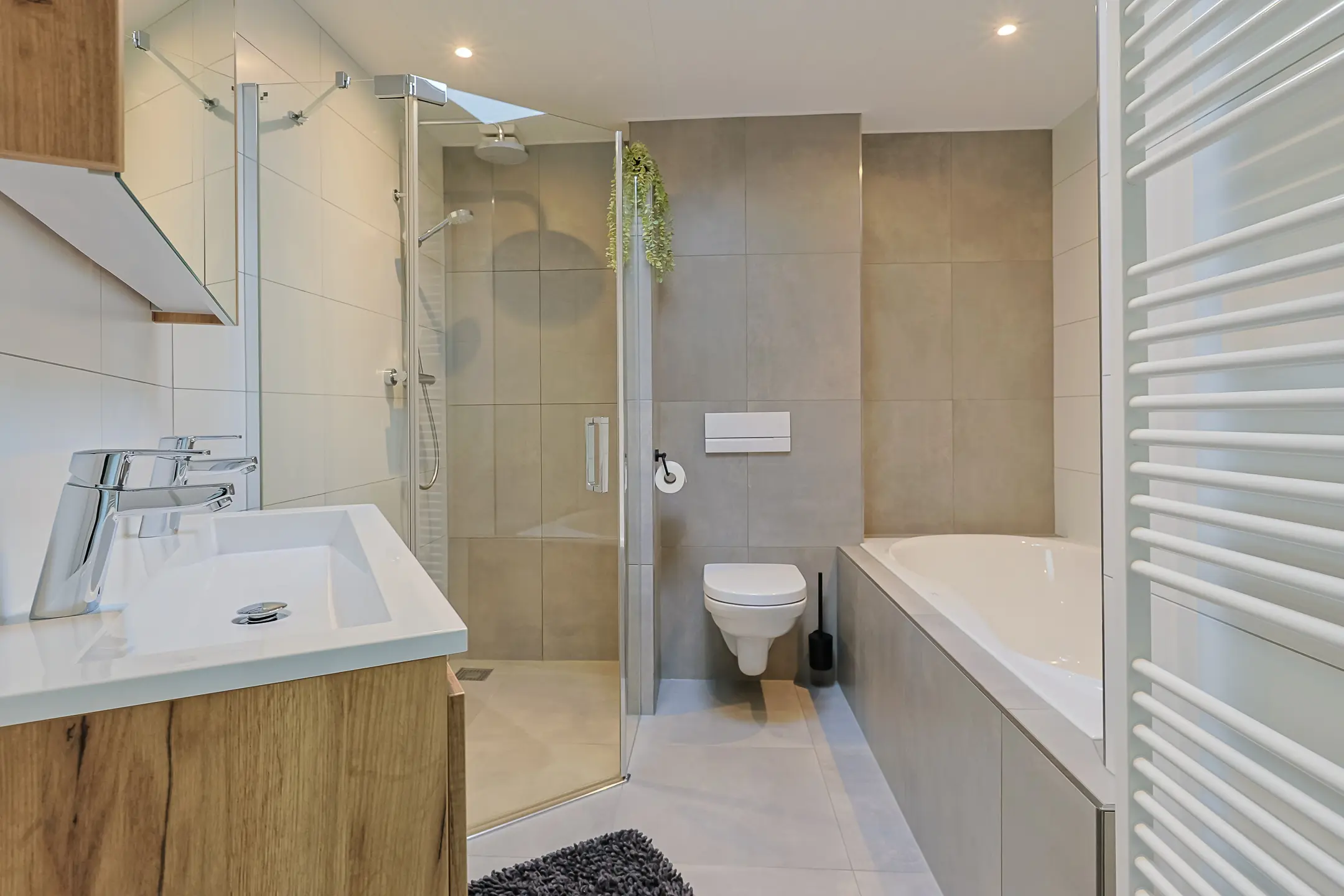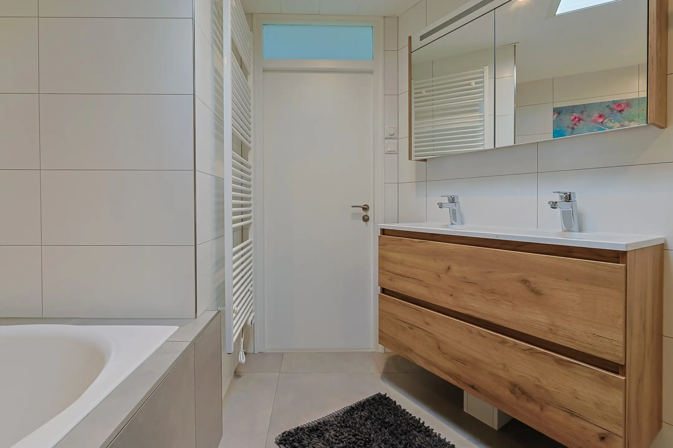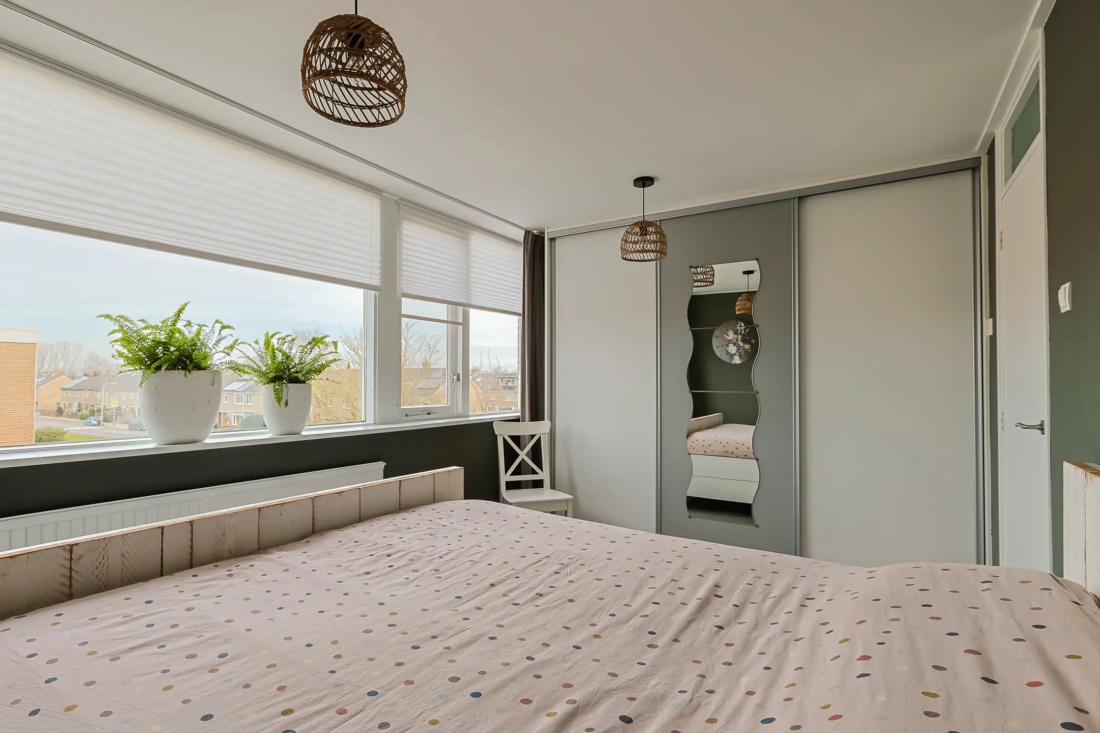 Overloop met praktische bergkast, twee slaapkamers aan de achterzijde en een woningbrede slaapkamer aan de voorzijde. De moderne badkamer (2020) is compleet uitgevoerd met een wastafelmeubel met dubbele kraan, douche, ligbad, vrijhangend toilet en handdoekenradiator. Dankzij de vloerverwarming en de dakkoepel is het hier extra comfortabel en heerlijk licht.