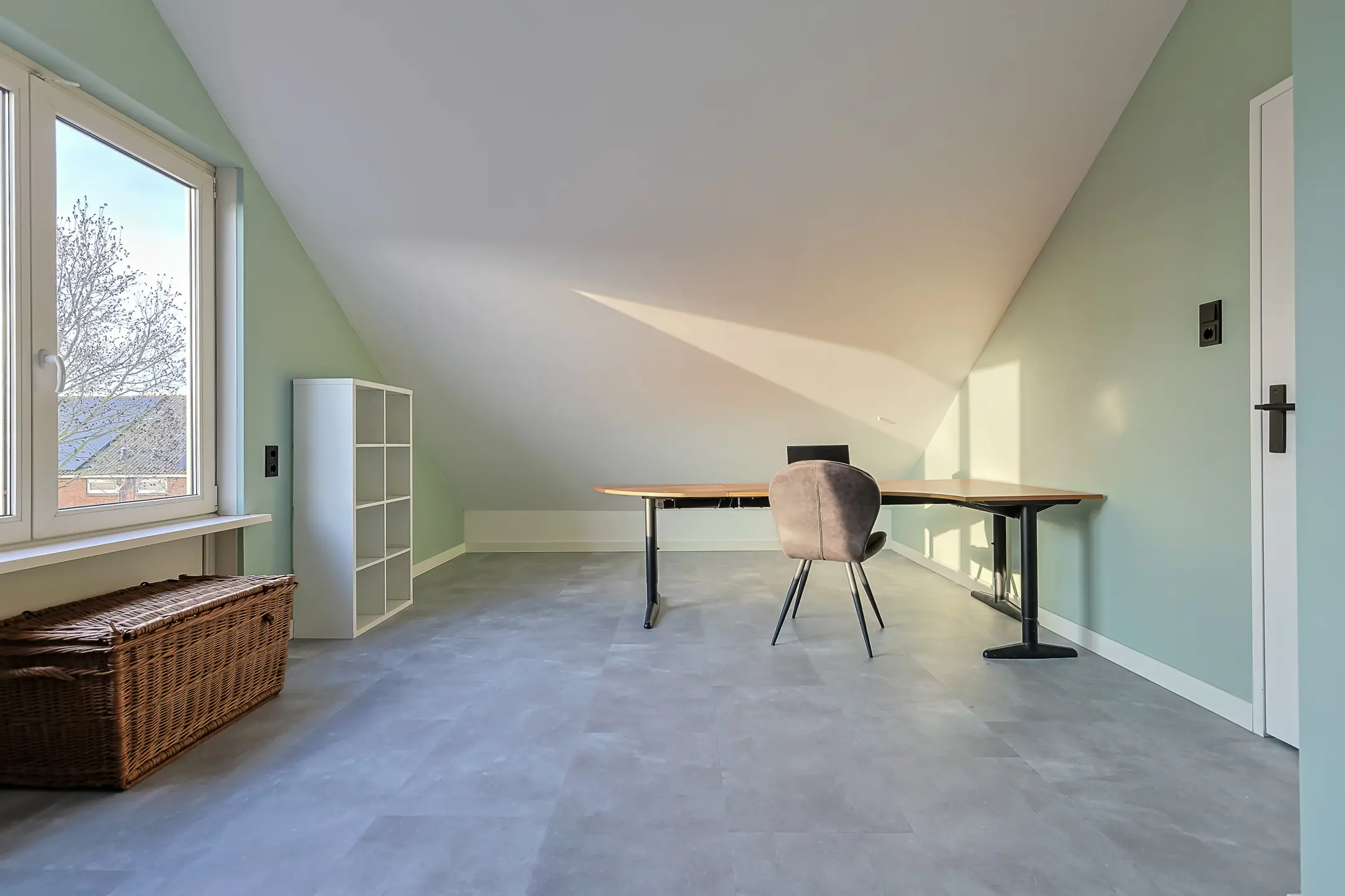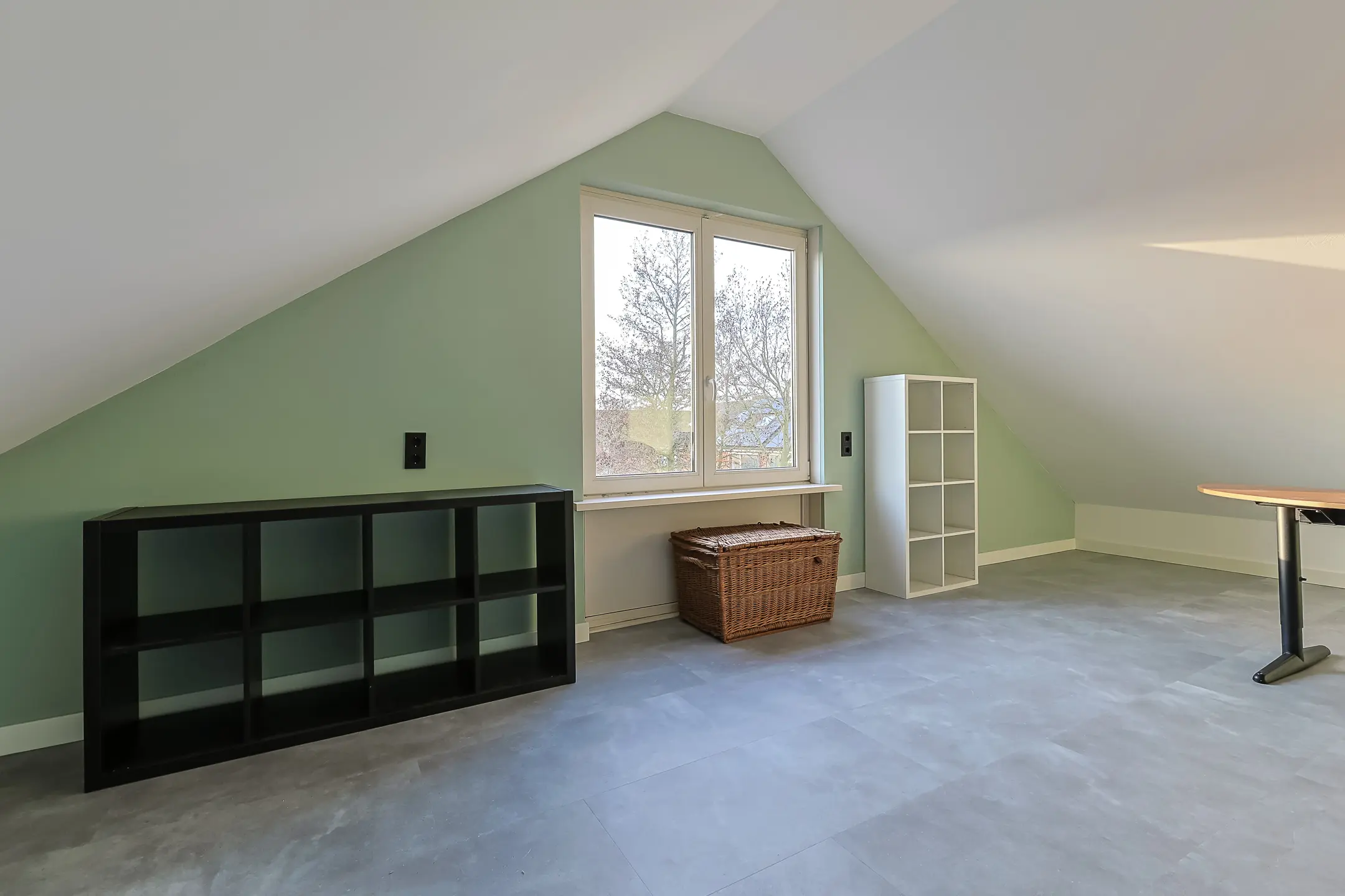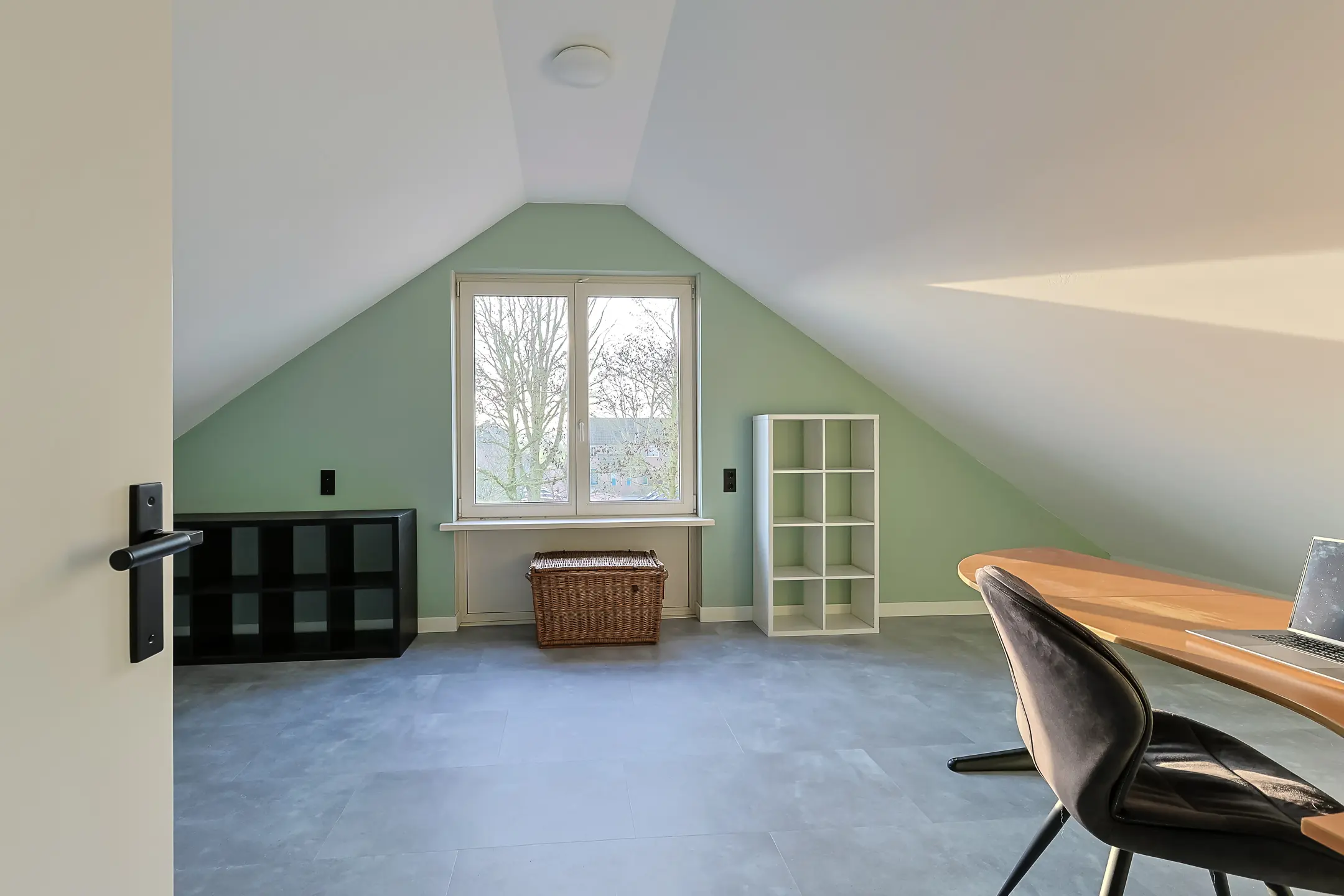 De zolder is in 2025 volledig vernieuwd en afgewerkt met een pvc vloer. Hier vind je een vierde slaapkamer, aansluitingen voor de wasmachine en extra bergruimte met de cv-opstelling. Dankzij de afwerking en isolatie is deze verdieping klaar voor gebruik.