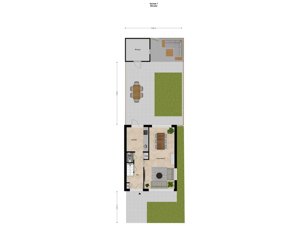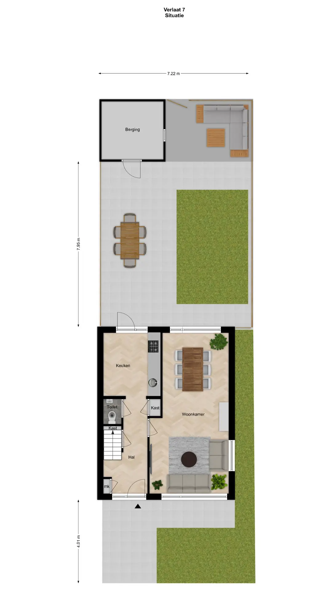 Verlaat 7 ligt in een rustige doodlopende straat in een kindvriendelijke wijk in Zevenhoven. Aan de zijkant van de woning bevindt zich een grote speeltuin en er zijn volop parkeerplekken. De omgeving is ruim opgezet en groen, met de basisschool, sportvelden en voorzieningen op loopafstand. De bereikbaarheid richting Alphen aan den Rijn en de Randstad is goed, zowel met de auto als het openbaar vervoer.