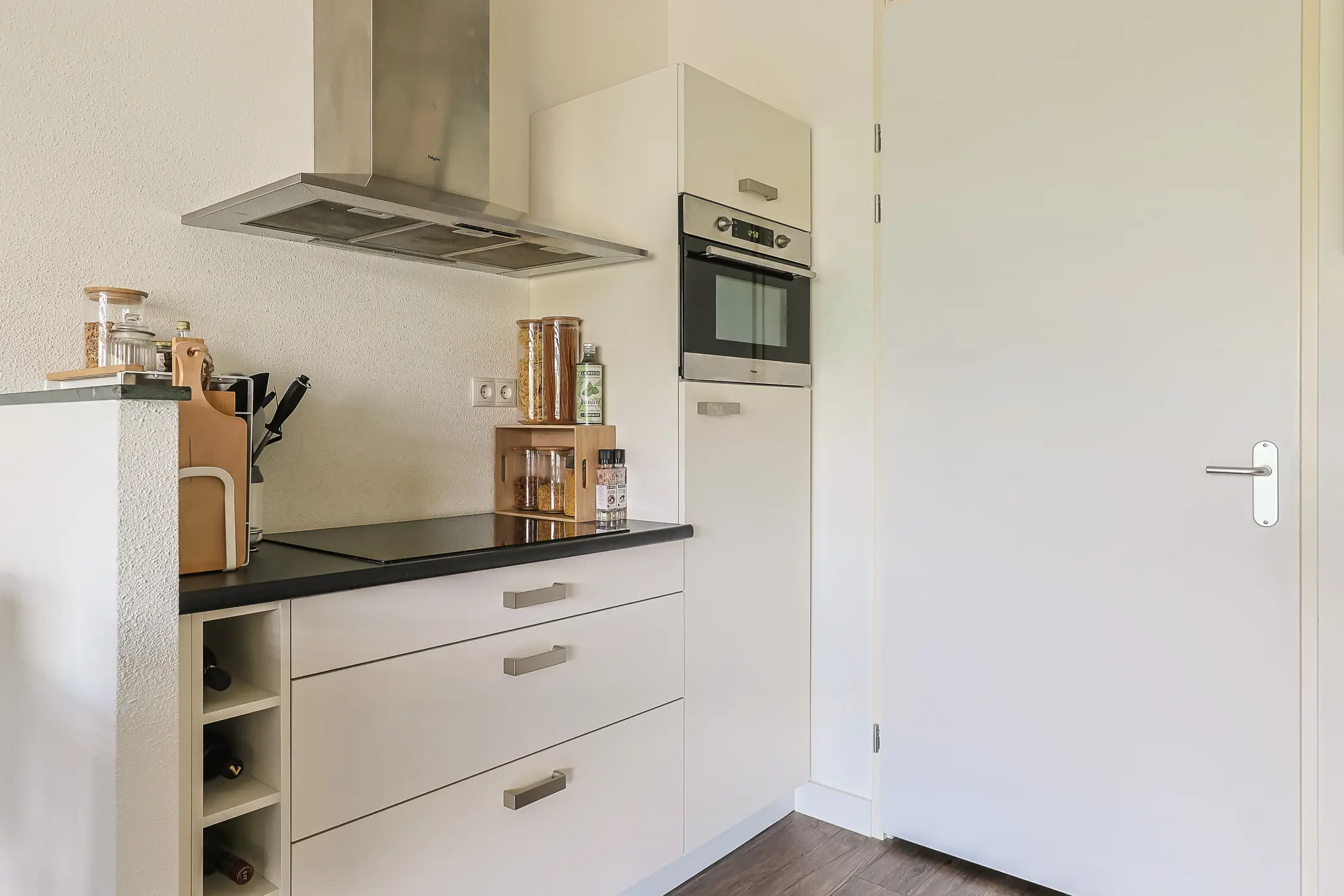 - Keuken voorzien van inductiekookplaat, afzuigkap, combimagnetron, koel-vriescombinatie en vaatwasser;